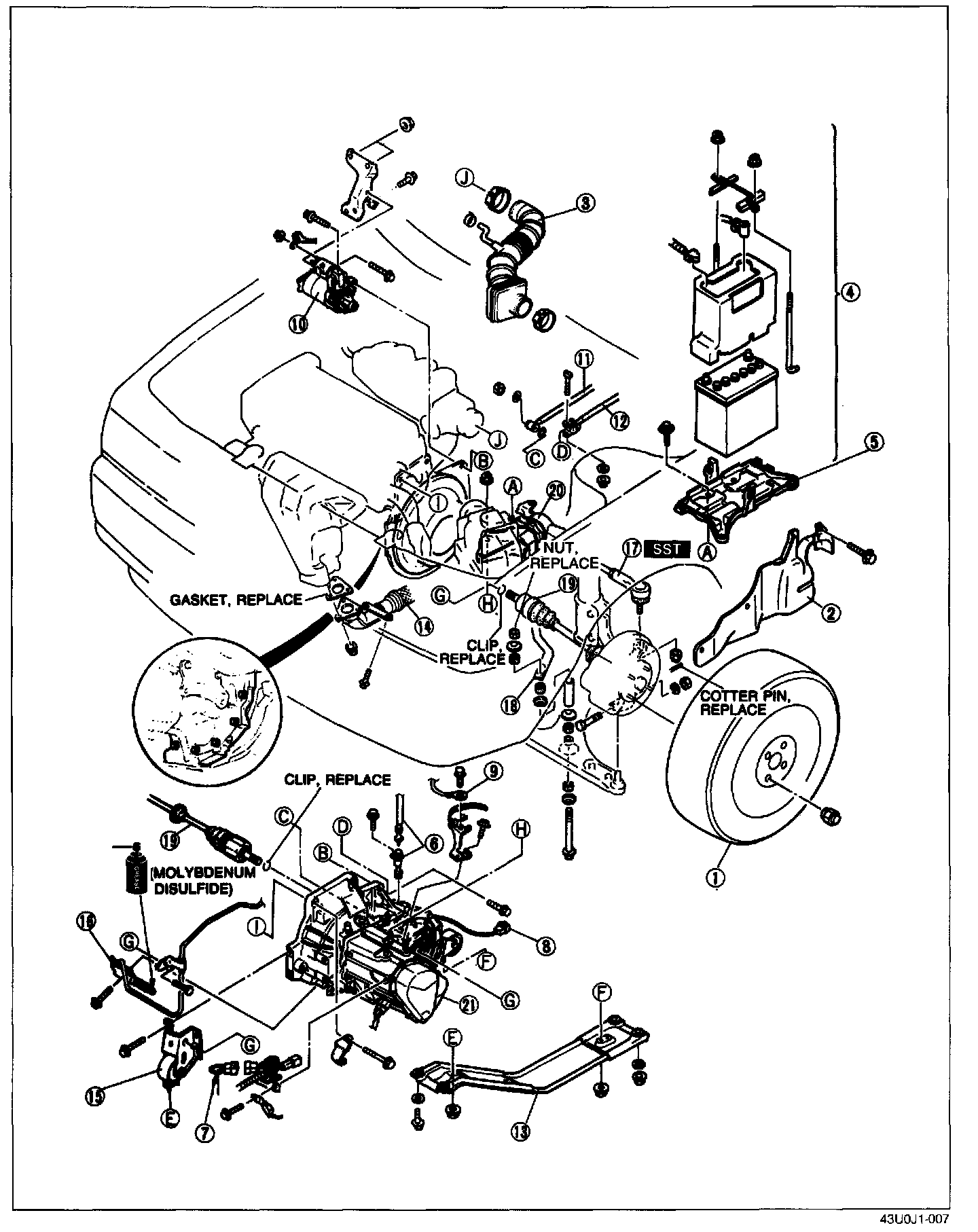 1. Loosen the SST (engine support) and lean the engine toward the transaxle.