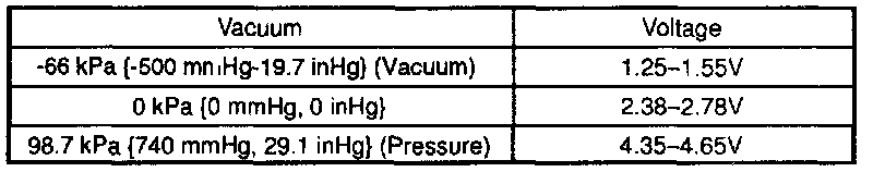 6. Apply vacuum and measure the voltage of the manifold absolute pressure sensor.