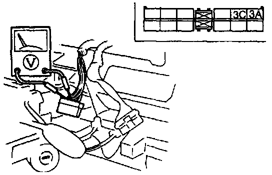 5. Measure the voltage between terminals 3A and 3C of the speedometer connector (harness side) while the rear wheels are turning slowly.