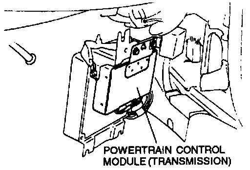 The powertrain control module transmission is located in the right front kick panel area behind the powertrain control module engine.
