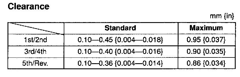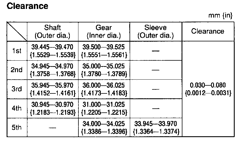 Secondary shaft gear runout: 0.015 mm (0.0006 in) max.