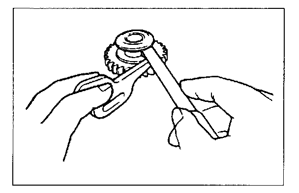 4. Measure the clearance between the synchronizer ring and the flank surface of the gear all around the circumference.