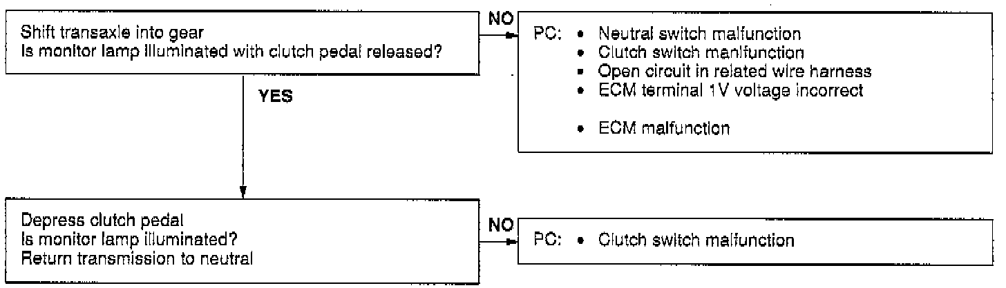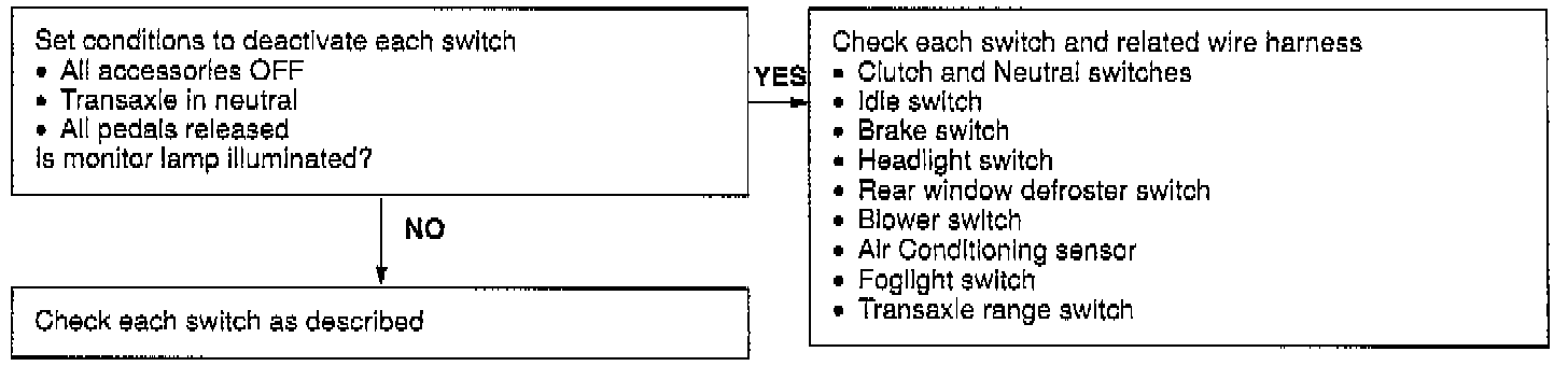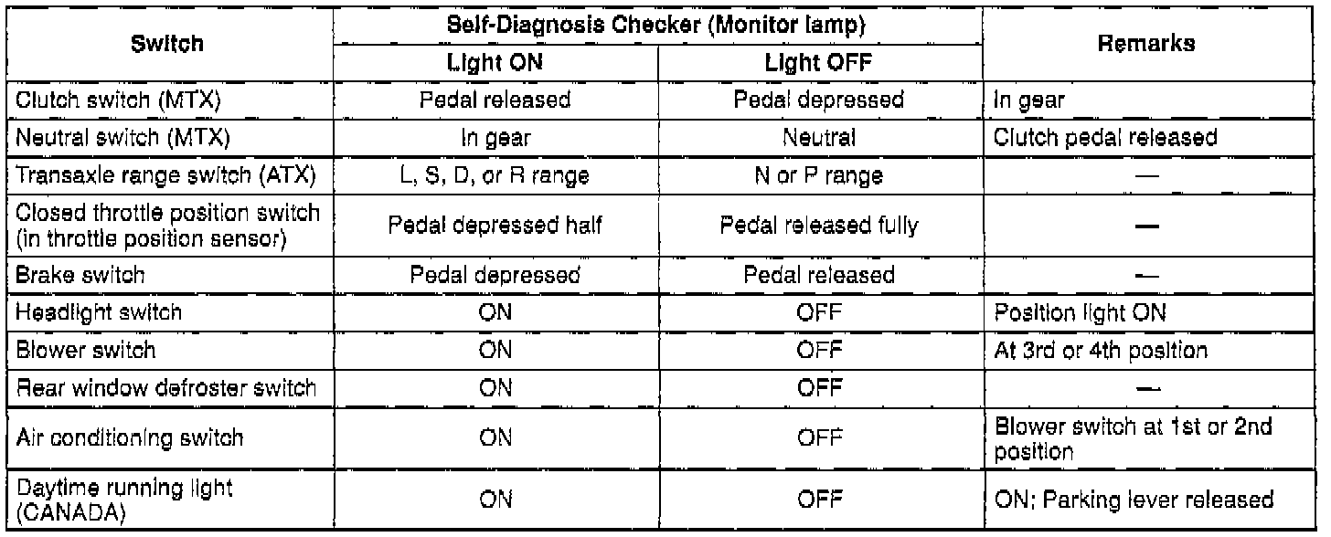 The TEN terminal of the data link connector must be grounded and the ignition switch turned to ON (engine off). If either switch remains activated, the monitor light will be illuminated.