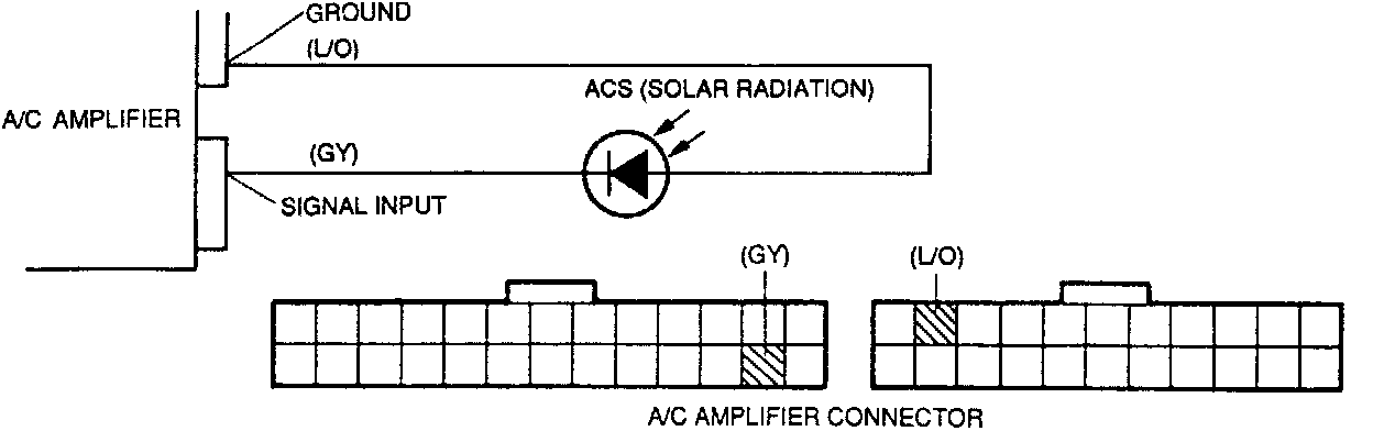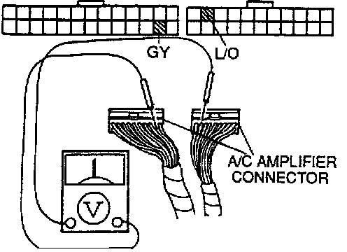 2. Measure the voltage between terminal wires (GY) and (L/O) of the connector.