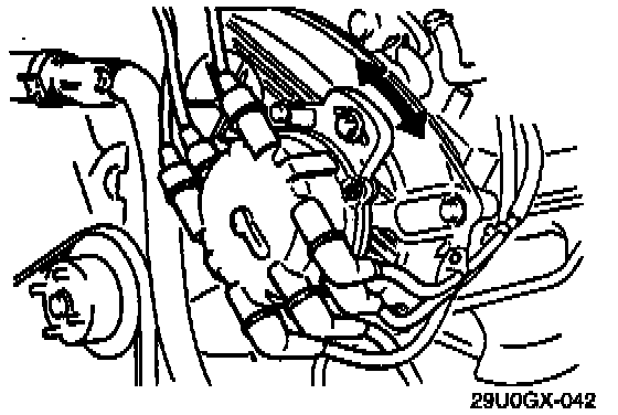 9. If the ignition timing is not within specification, loosen the distributor body lock bolt and turn the Distributor to make the adjustment.
