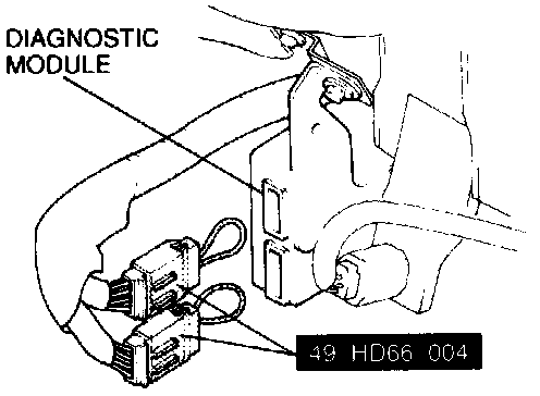 ^ Before replacement of any air bag system component or before disconnecting any connector of the system, first disconnect the negative battery cable; then disconnect the diagnostic module connector and connect the SST to it as shown in the figure.