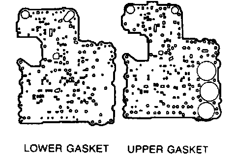 3. Set the new upper and lower gaskets and separate plate onto the lower valve body. Refer to the figure to distinguish the two gaskets.