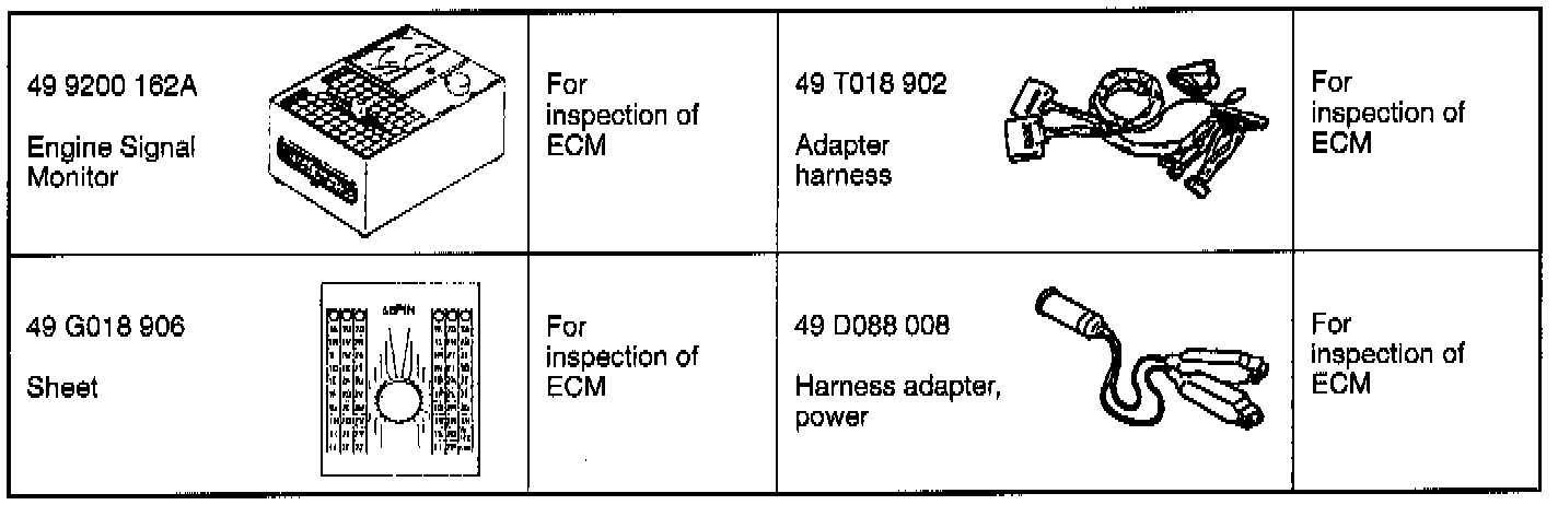 2. Connect the special service tools (SST)s (Engine Signal Monitor and Adapter) to the engine control module (ECM).