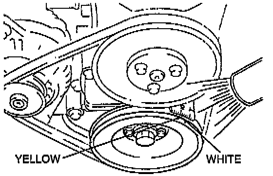 5. Verify that the timing mark (white) on the crankshaft pulley and the T mark on the timing belt cover are aligned.