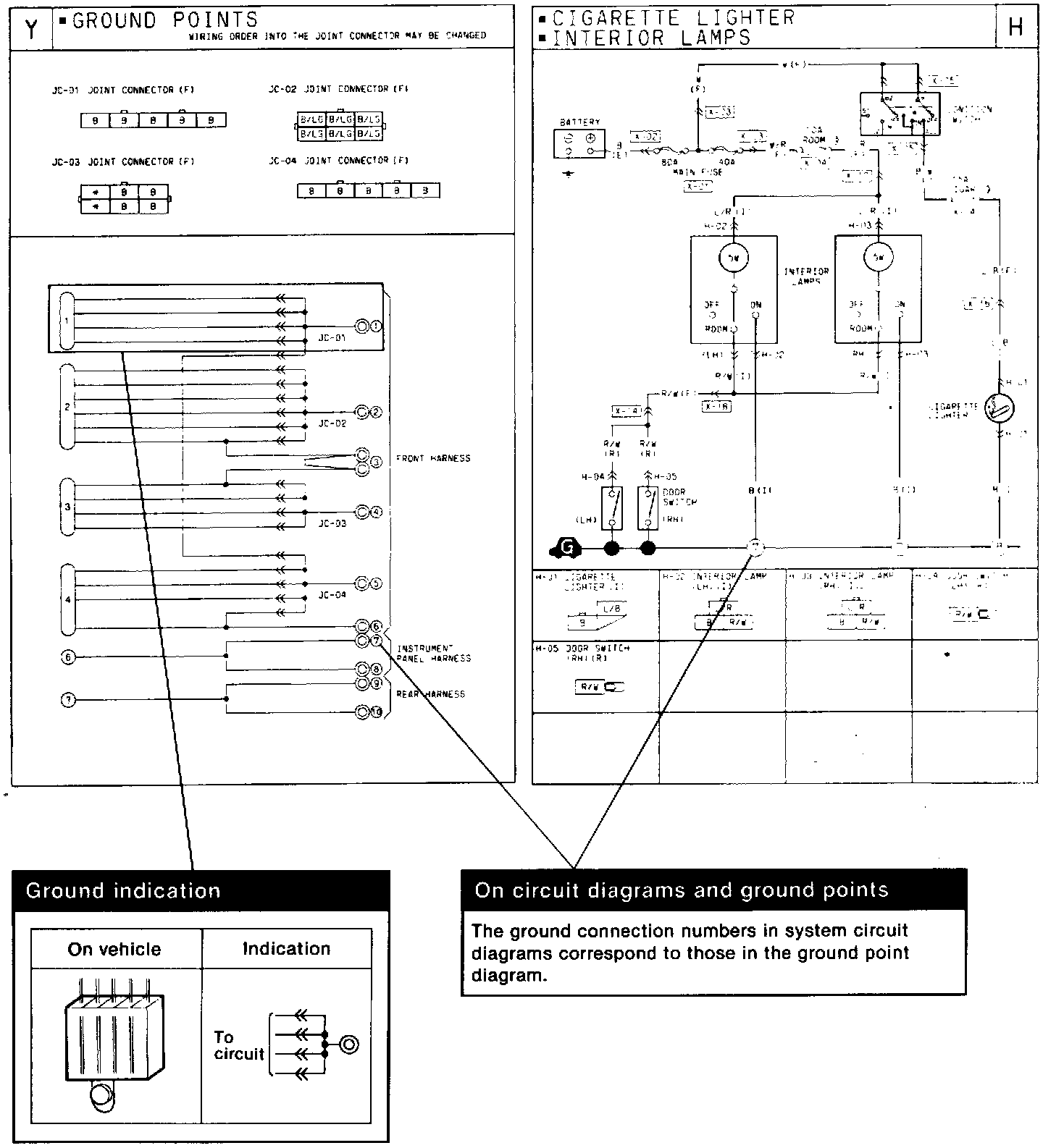 This shows ground points of the harness.