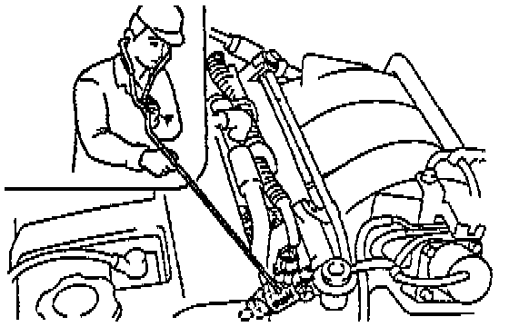 2. Depress the accelerator pedal fully and turn the ignition switch to START. Verify that no fuel injector operating sound is heard.