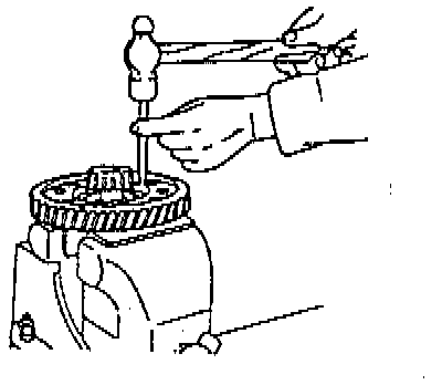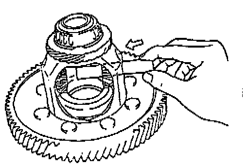 2. Insert a 2.0 mm (0.079 inch) punch into the roll pin hole from the ring gear side, and remove the roll pin by using a hammer.