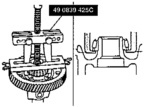 1. Remove the bearing (speedometer drive gear side) from the gear case by using the Special Service Tool (SST).