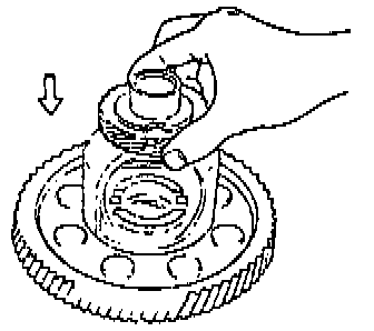 9. Install the thrust washers and side gears into the gear case, then turn the side gears and align them with the drive shaft holes.