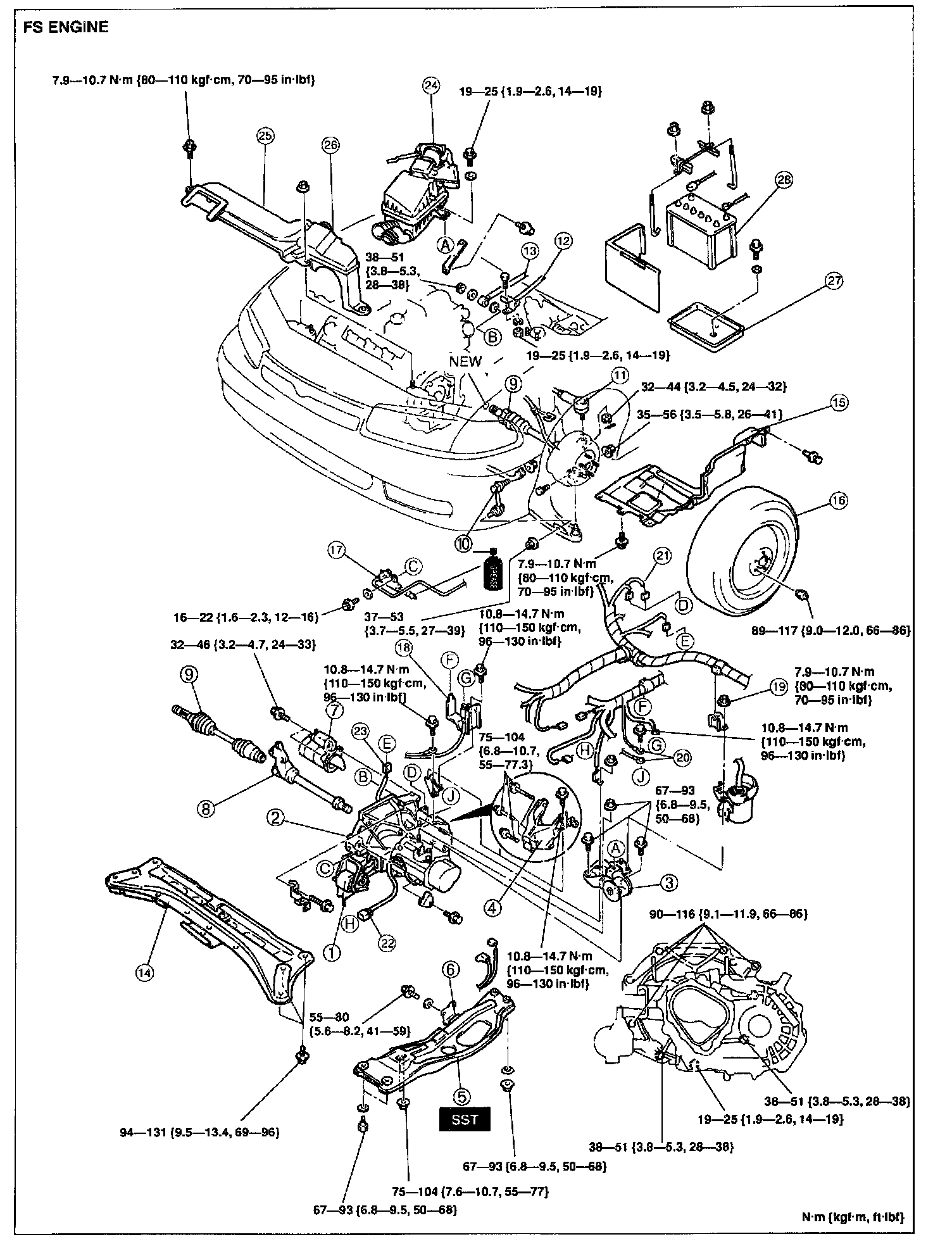 FS: 90-116 N.m (9.1-11.9 kgf.m, 68-86 ft.lbf)