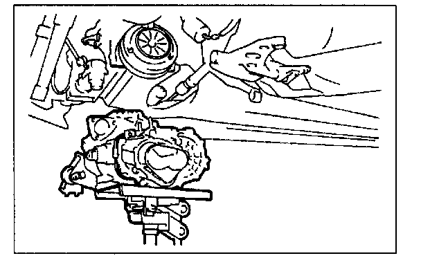 1. Set the transaxle on a jack and lift into place.
