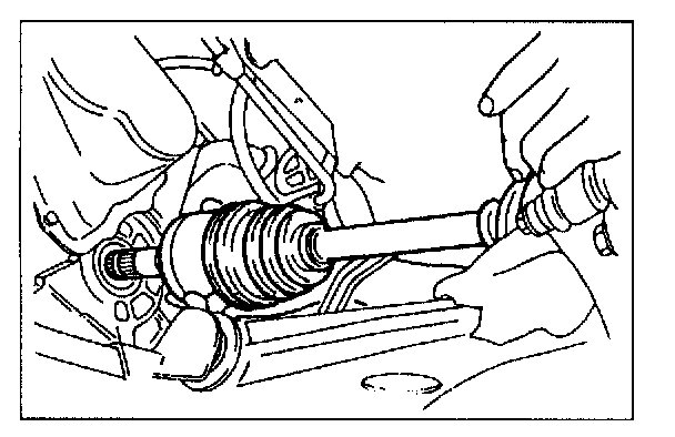 CAUTION: The sharp edges of the drive shaft snap ring can slice or puncture the oil seal. Be careful when installing the drive shaft to the transaxle.