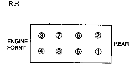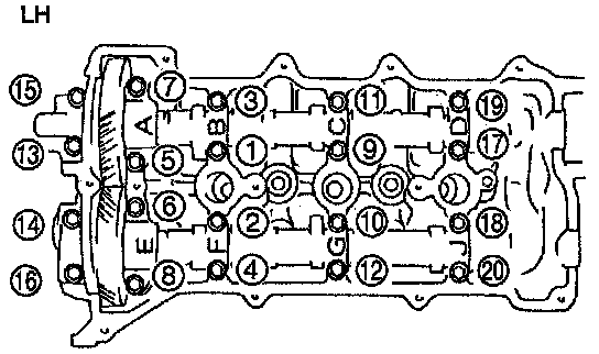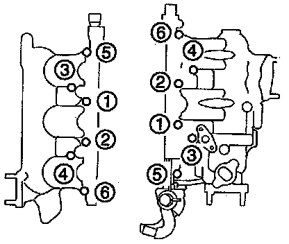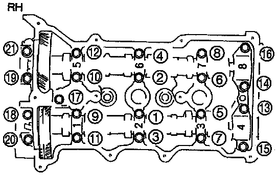 1. Loosen the cylinder head bolts in two or three steps in the order shown.