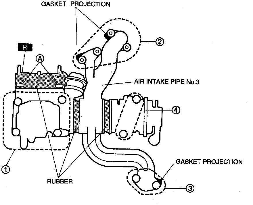 1. Hand tighten the nuts and bolts in the order shown until the air intake pipe No. 3 contacts the intake manifold.