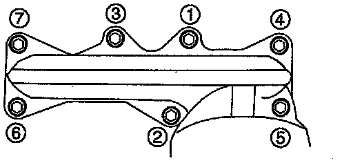 3) Tighten the bolts in two or three steps in the order shown.