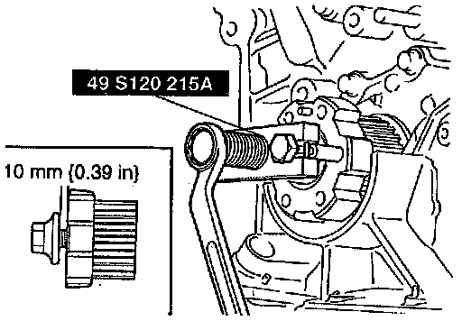2. Loosen the timing belt pulley lock bolt 10 mm (0.39 inch).