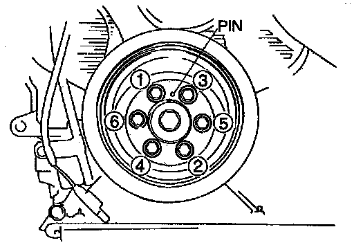 3. Hand tighten the crankshaft pulley bolts and tighten the bolts in the order shown.