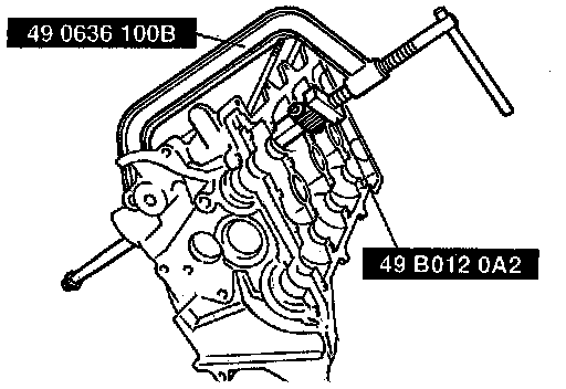 1. Set the Special Service Tool (SST) against the upper valve spring seat as shown.