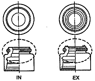 CAUTION: The intake and exhaust valve seals are different as shown. The exhaust valve seal has ridges on the top for identification.