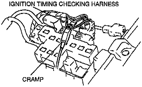 8. Connect the SST to the ignition timing checking harness with the arrow on the clamp facing the connector.