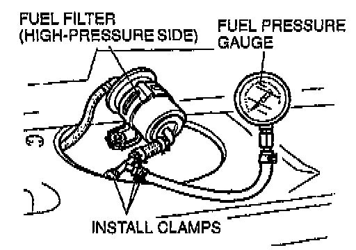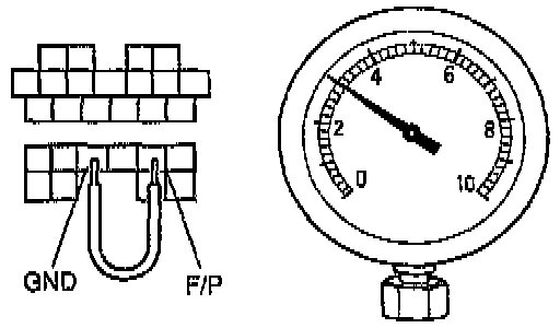 8. If the pressure is lower than specified, measure the fuel line pressure while pinching the return hose.