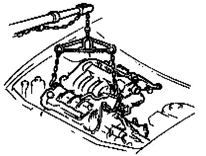 - Slowly lift up the engine and transaxle as a unit. Keep the engine from swinging or bumping into components in the engine compartment.