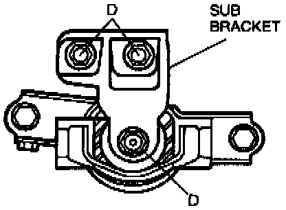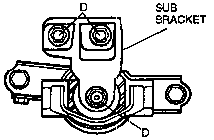 2. Hand tighten No.3 engine mount sub bracket nuts D.
