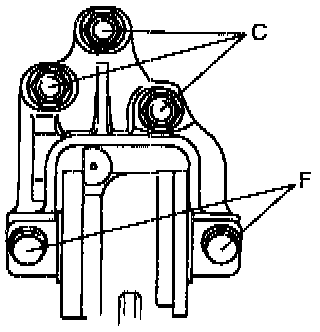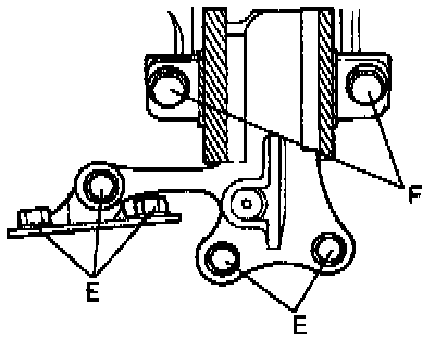 4. Tighten No.4 engine mount nuts C and bolts F.