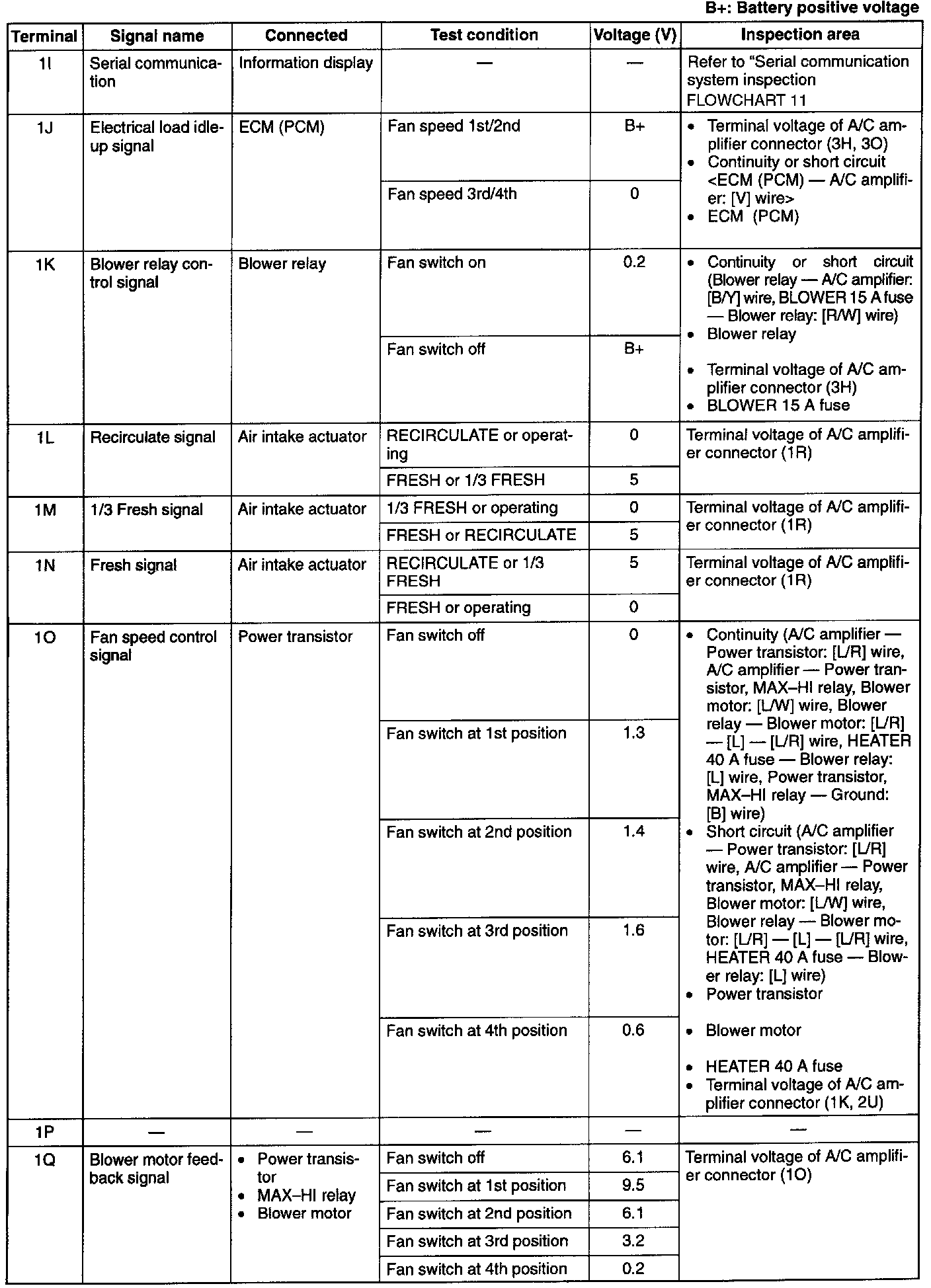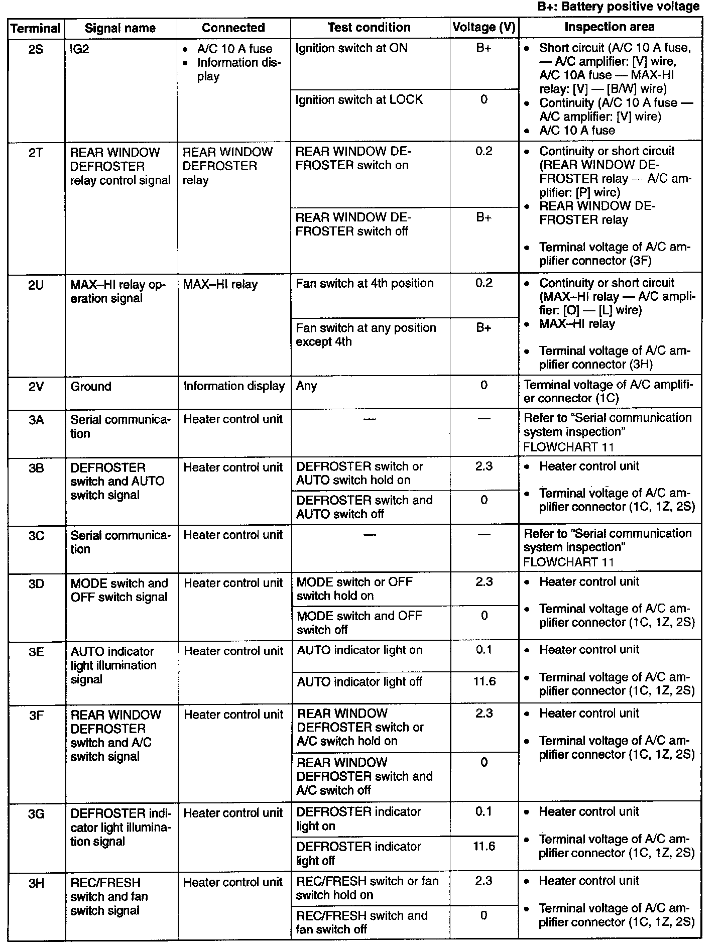 6. If the appropriate area is correct, replace the A/C amplifier.