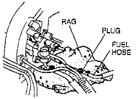 1. When disconnecting a fuel line hose, wrap a rag around it to protect against fuel leakage.