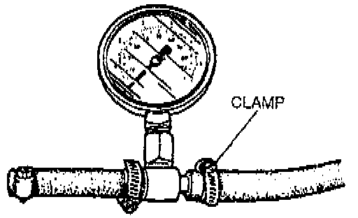 C. Install hose clamps to secure the fuel pressure gauge to fuel filter and the main hose.