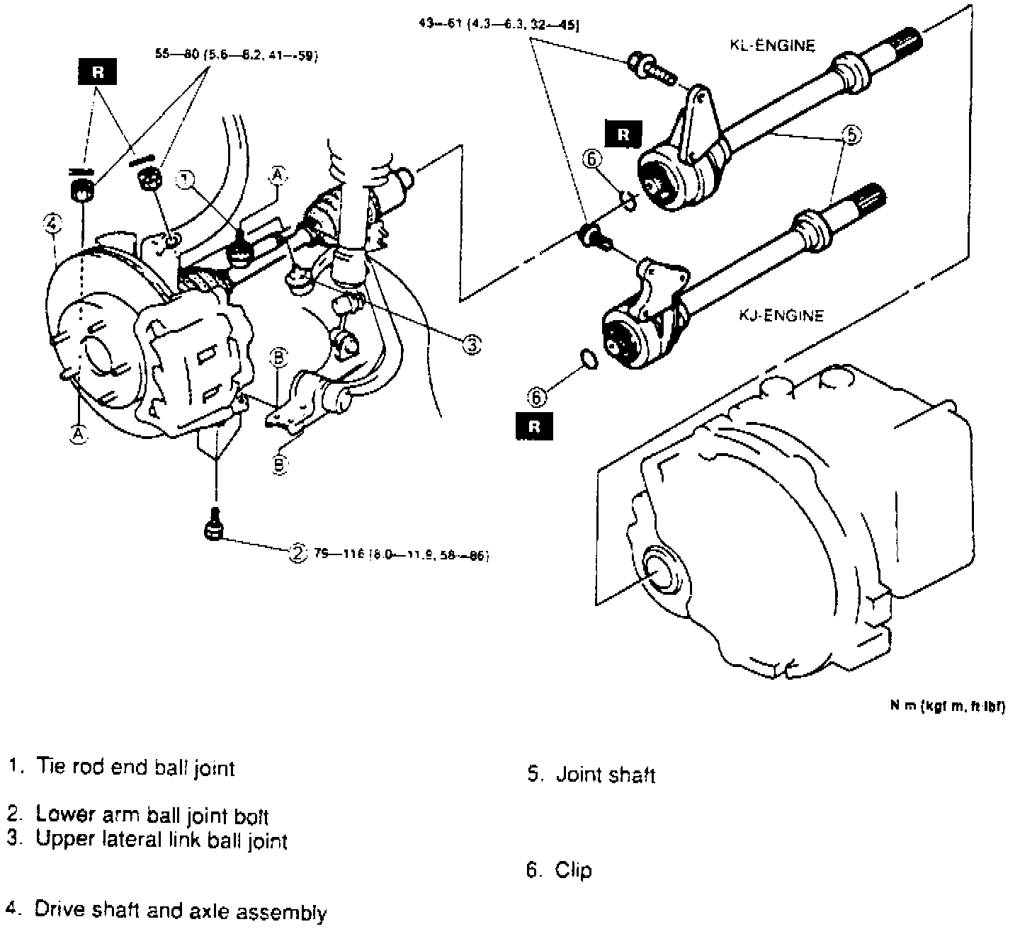 1. Drain transaxle fluid into a suitable container, then remove intermediate (joint) shaft in numbered sequence shown, Fig. 31. It may be necessary to use a copper or brass bar and a hammer to separate righthand driveshaft from intermediate (joint) shaft.Fig. 31 Intermediate (Joint) Shaft Replacement: