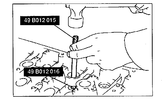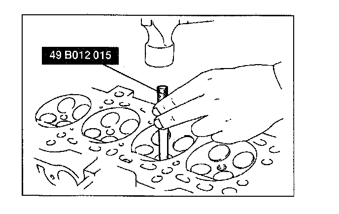 3. Using the SST, tap the valve guide in from the side opposite the combustion chamber until the SST contacts the cylinder head.