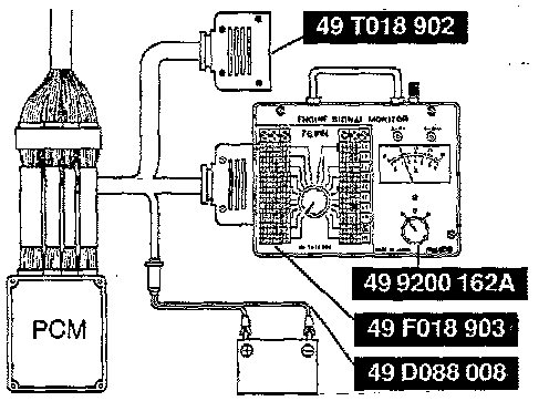 ^ The indicator lights of the SST (Monitor, Engine Signal), provided for confirmation of the voltmeter range, is also used for detection of the pulse such as the fuel injector control signal, which is difficult to detect by using the voltmeter.