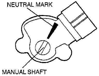 9. Turn transaxle range switch so that the neutral mark is in line with the flat, straight surfaces on either side of the manual shaft.