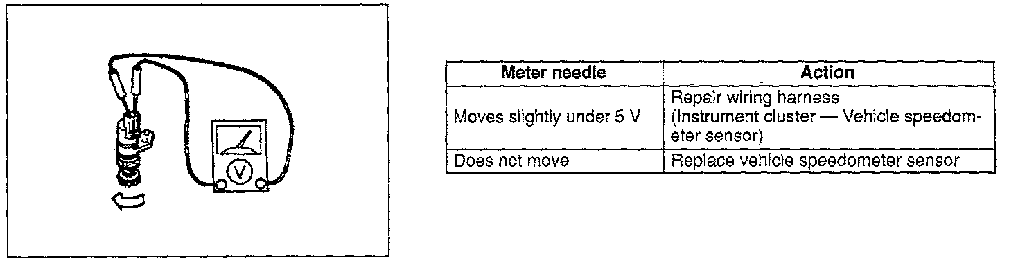 2. Measure voltage between the terminals of the vehicle speedometer sensor while rotating the driven gear.