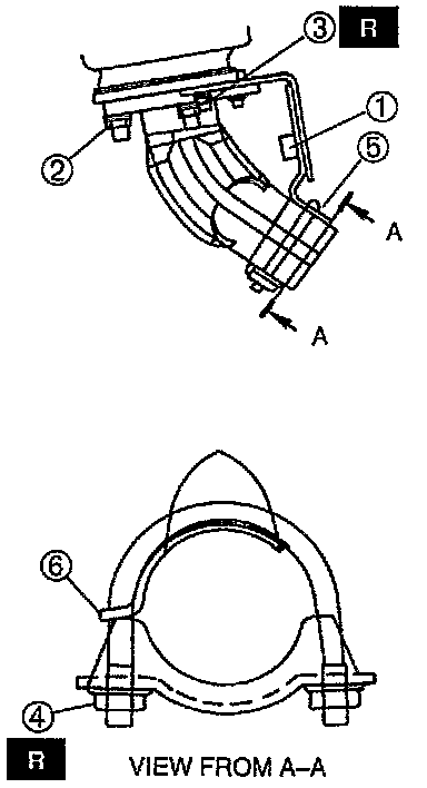 3. Check for correct alignment at "5"(front pipe and bracket).