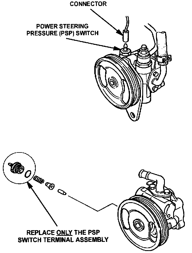 ^ If the A/C system operates replace only the PSP switch terminal assembly.