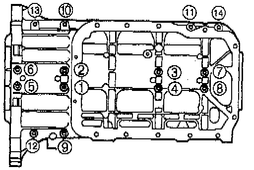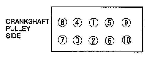 2. Tighten the cylinder head bolts in two or three steps in the order shown.
