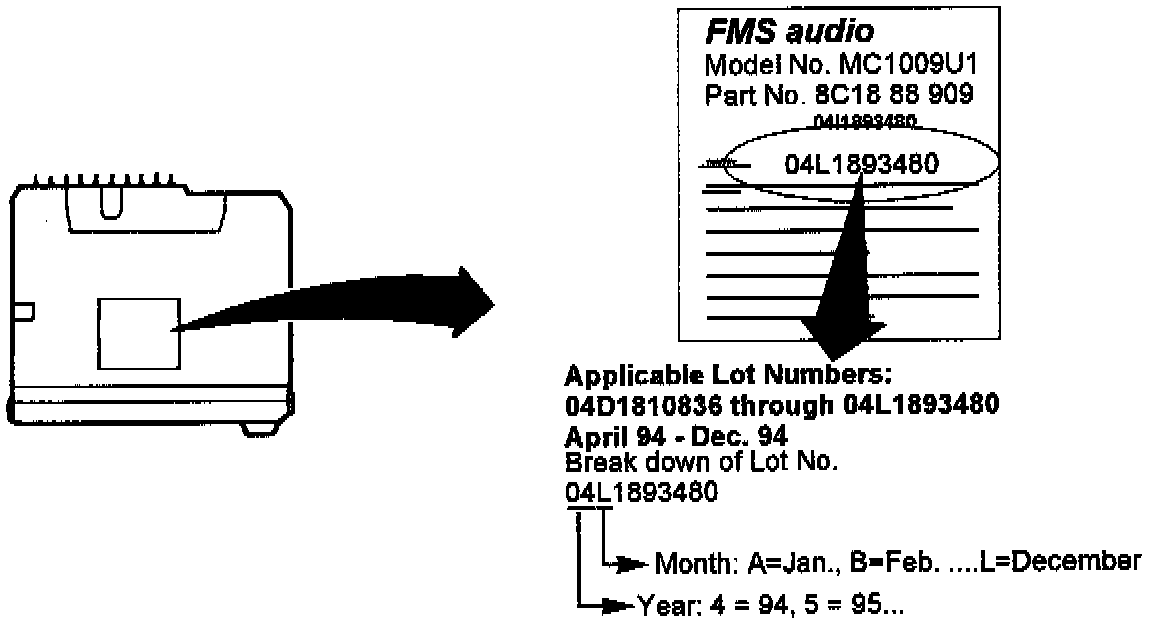 There are no part number changes. Refer to the "Lot" number to identify new and old audio components. Modified audio systems are available through the FMS service center at 1-800-523-6605. *