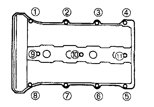 (4) Install the cylinder head cover and tighten the bolts in five or six steps in the order shown.