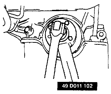 (1) Using the SST 49 D011 102, remove the pulley lock bolt.
