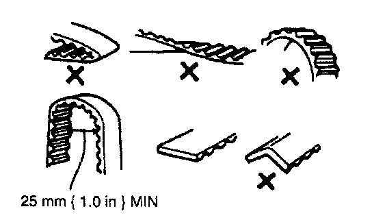 Caution: The following will damage the belt and shorten its life; Forcefully twisting it, turning it inside out, or allowing oil or grease on it.