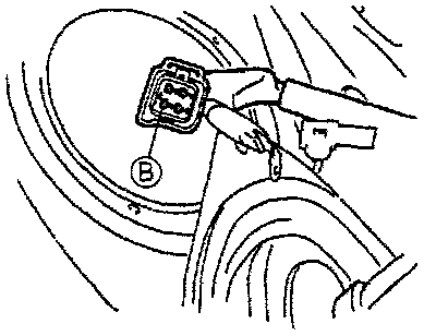 5. If no operation sound is heard, measure the voltage at harness side fuel pump connector terminal B.