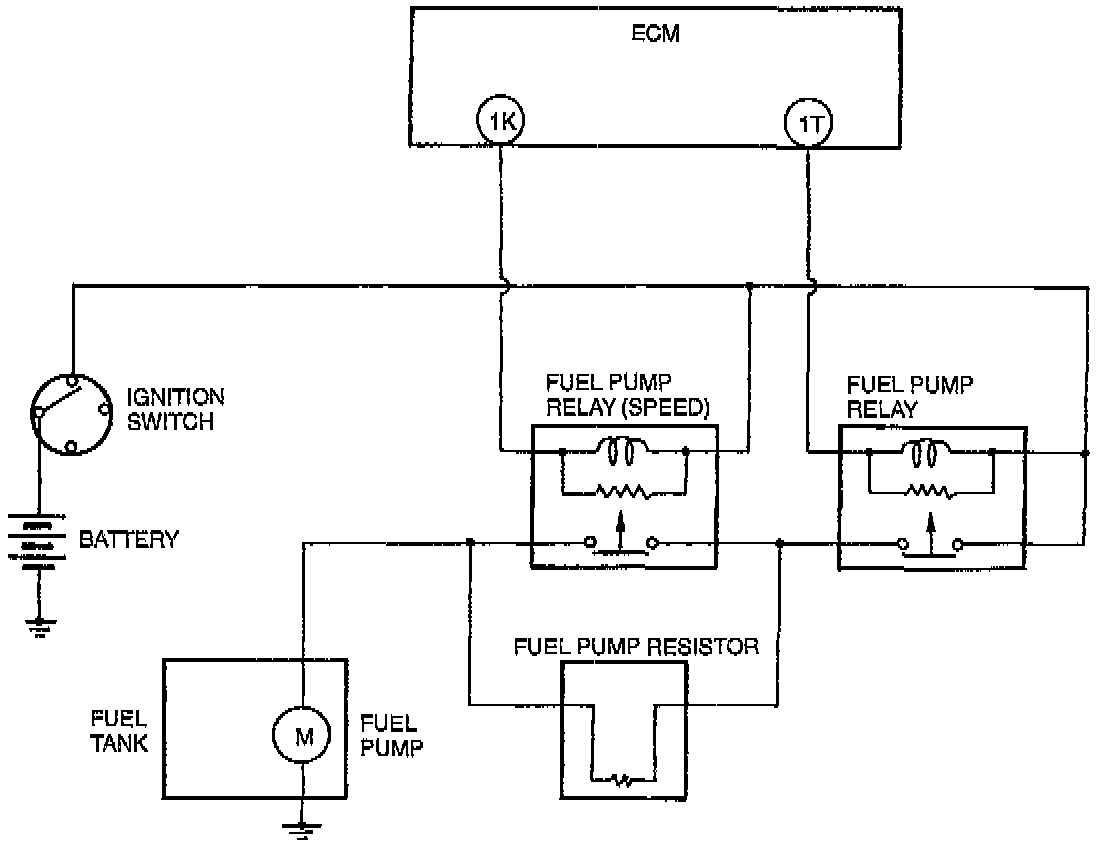 - The fuel pump relay (speed) is controlled by the ECM and controls fuel pump operation voltage via the fuel pump resistor.